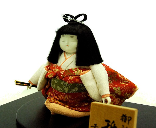 日本人形 5号 御所雅 扇子 3301 幸一光作 ケース入 巾28×奥21×高さ21cm