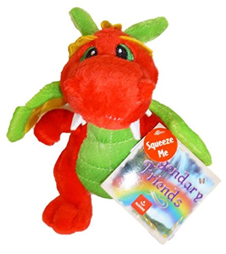 -. Feature : Cute, fun red, green and yellow plush dragon / Stands alone; measures approximately 7" / Embroidered eyes; shiny yellow accenting on inside of wings and tail spikes / Makes a roaring sound when you squeeze the chest / Available in 3 colors (sold separately)