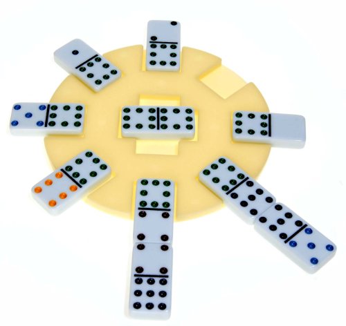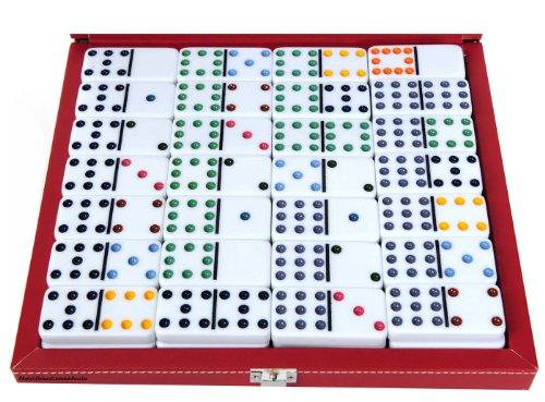 - Feature : Set of 91 solid, smooth white, professional dominoes. Double 12 dominoes. / Professional size dominoes measure 2 x 1 x 3/8 inch. / Color-coded DOTS/PIPS. Different color for every number. Some colors will be somewhat similar. / Bonus plastic starter/centerpiece which can be used for Mexican Train game variation. Despite Review Centerpiece is Definitely Included. / Sturdy, leatherette case in two-toned black and maroon with decorative white stitching.