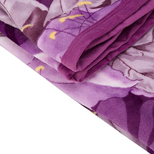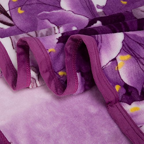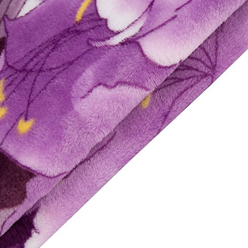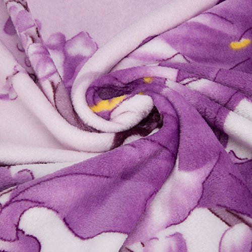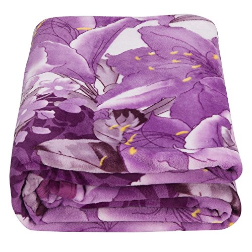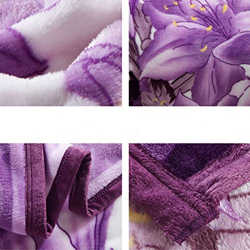 Babycare Pro Noble Purple Lily Print Coral Fleece Bed Blanket Queen/King Size for Winter,Spring,Fall, 80"x90" (200x230cm) (Purple-A)