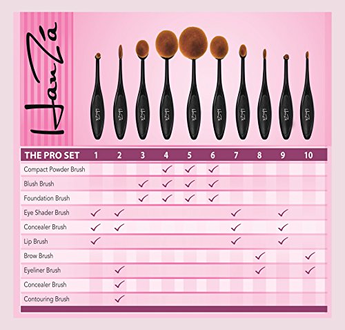 Makeup Brushes by HanZá - 10 PIECE Professional Oval Makeup Brush Sets For Powder, Blush, Foundation, Concealer, Eyeliner, Eye Shadow, Etc. Easily...