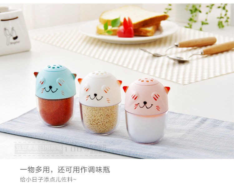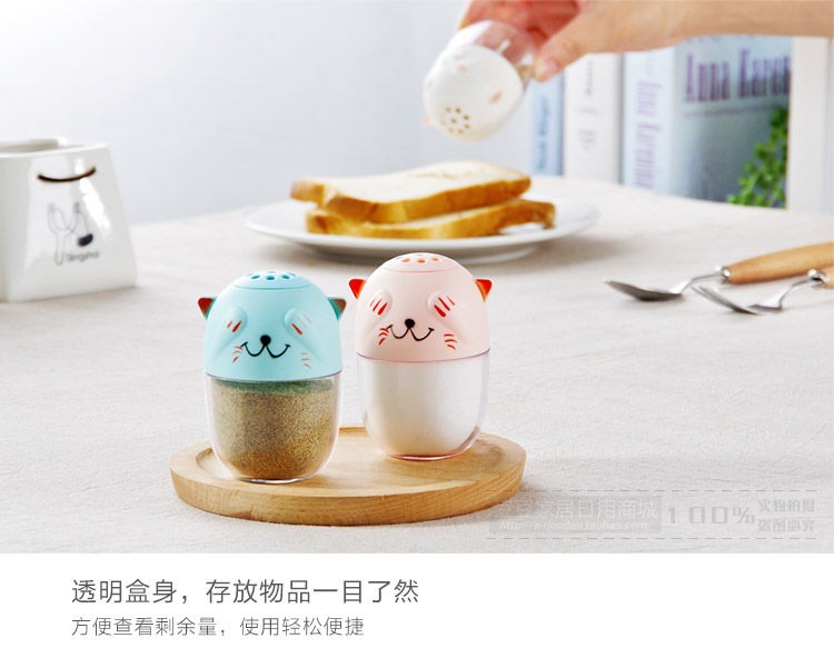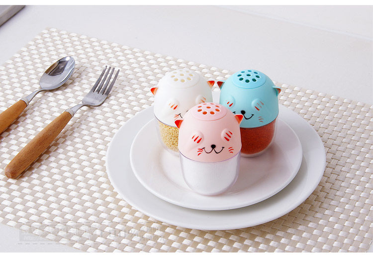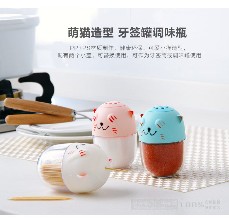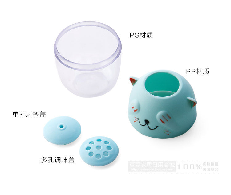 The use of PP + PS material production, environmental health, the use of peace of mind, cute kitten style, with two small cover, can be used interchangeably, can be used as toothpick cans or seasoning cans.