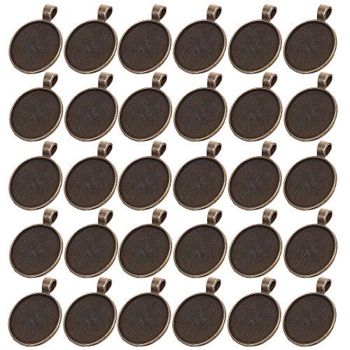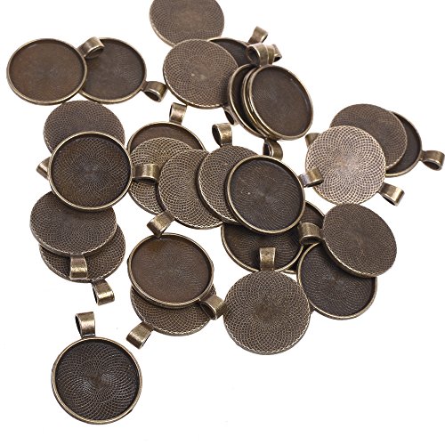BCP 30pcs 1inch Circle Pendant Blank Tray Cabochon Settings (Antiqued Bronze Color)