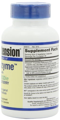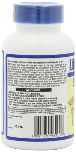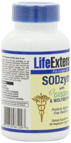 -. Binding : Health and Beauty -. Brand : Life Extension -. EAN : 0737870961093 -. Feature : Combines three ingredients that help to replenish the body's supply of SOD, vastly enhancing its natural antioxidant defenses / Contains GliSODin®, a patented, plant-derived form of SOD / Wolfberry is found to have one of the highest ORAC values of all fruits, and is effective in scavenging superoxide radicals and preventing their formation -. IsAdultProduct : 0 -. Label : Life Extension -. LegalDisclaimer : * These statements have not been evaluated by the Food and Drug Administration. This product is not intended to diagnose, treat, cure or prevent any disease. **Always refer to the manufacturer's label on the product for description, recommended dose and precautions. -. Manufacturer : Life Extension -. Model : 737870961093 -. MPN : 961 -. NumberOfItems : 1 -. PackageQuantity : 1 -. PartNumber : 961 -. ProductGroup : Health and Beauty -. ProductTypeName : HEALTH_PERSONAL_CARE -. PublicationDate : 2011-01-12 -. Publisher : Life Extension -. Size : 90 -. Studio : Life Extension -. Title : Life Extension SODzyme w/GliSODin & Wolfberry, 90 vegetarian capsules -. UPC : 737870961093