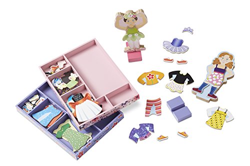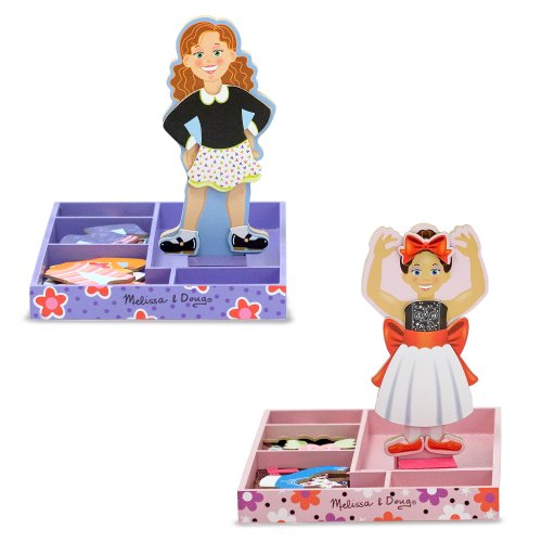 -. Feature : 2 Dress-up wooden magnetic doll set / Each set includes 1 wooden doll and stand, plus 27 magnetic pieces of clothing and accessories / Sort the matching pieces or mix and match to make your own creations / Sturdy wooden storage tray / Promotes hand-eye coordination, creative expression and imaginative play