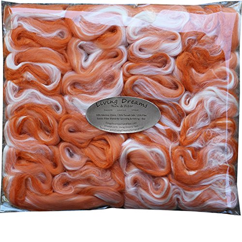 MERINO SILK LINEN FLAX Fiber for Spinning and Felting. MADE IN USA from Cruelty Free & Sustainably Harvested Resources. Soft, Breathable and Eco Friendly. Papaya