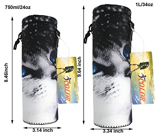 | Colorfulbags 1L (1000 Milliliter) Adjustable Neoprene Sport WaterBottle Case Cover Sleeve Bag W... |
