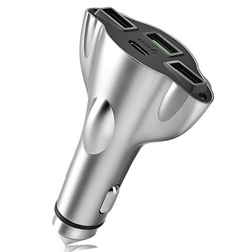 -. Feature : QUICK CHARGE 3.0: The 4 port charger quick car charger 3.0 with AUTOMAX technology is up to 4X faster than standard chargers, able to charge compatible devices to 80% in just 35 minutes, 38% more efficiency than Quick Charge 2.0 / CHARGING 4 DEVICES SIMULTANEOUSLY: Full USB-C compatibility. 4-Port multi usb car charger rapid charging adapter provides QC 3.0 and Type C USB ports with dedicated 3A output, other two ports charge for non-Quick Charge devices. Compatible with all USB powered devices Android iPhones and tablets. Allows you to use any standard AC charging port in your pickups, Autos, Cars or SUV to fast charge / INTELLIGENT SHUNTING TECHNOLOGY:4 Port car charger adapter can automatically recognize your devices and is compatible with most of electronic devices. Auto stop charging when battery is full / SPECIAL DESIGN & DURABLE MATERIAL: One of the most compact 4-port USB car chargers on the market. With a premium zinc-alloy finish allows the butt of the car charger to be used as a Saftety Hammer capable of breaking glass. Also offer an LED ring for low-light conditions / JMFONE ADVANTAGE: What we most concerned about is to ensure your safety. JMFONE Unique Security System and High Heat Dissipation protect you and your devices (12V/24V input) from short circuit, overheating and more. Built-in safeguards protect your devices against excessive current, overvoltage, overheating, and overcharging