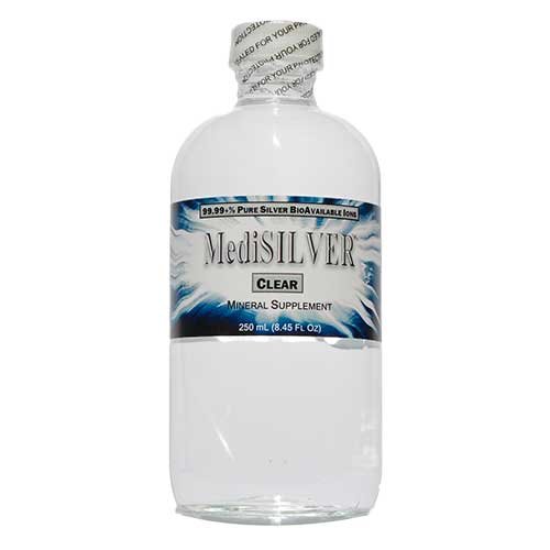 -. Binding : Health and Beauty -. Brand : MediSILVER CLEAR -. EAN : 0852630003452 -. Feature : 99.99+% pure ionic Silver in pure, sterile pharmaceutical grade water / 20 ppm concentration contains the world's smallest bioavailable Silver particles / Average particle less than 0.3 nanometers (nm) for maximum bioavailability / Made to exacting specifications and bottled by an FDA certified facility / Made with the higest purity ingredients in a glass bottle to ensure safety and long shelf life -. IsAdultProduct : 0 -. Label : Nutraneering -. Manufacturer : Nutraneering -. Model : MSC250G -. MPN : MSCLEAR250-GLASS -. PackageQuantity : 1 -. PartNumber : MSCLEAR250-GLASS -. ProductGroup : Health and Beauty -. ProductTypeName : HEALTH_PERSONAL_CARE -. Publisher : Nutraneering -. Size : 250 milliliters, 8.45 fluid ounces -. Studio : Nutraneering -. Title : MediSILVER CLEAR (20 Ppm 99.99+% Pure Bioavailable Ionic "Colloidal" Silver) - 250 Ml (8.45 Fl Oz) Glass Bottle -. UPC : 852630003452