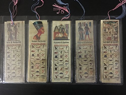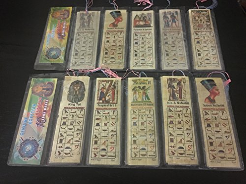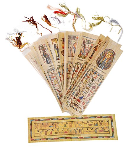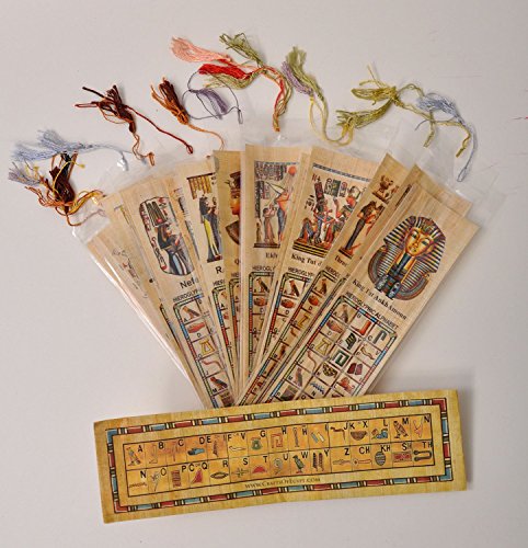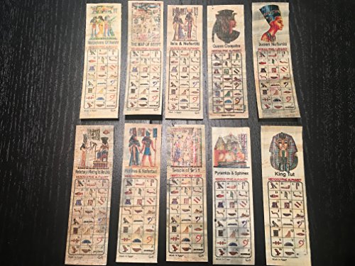 iRSE Office Lot of10 Egyptian Genuine Papyrus BookMark, Ancient Egypt Language Symbols and letters paper for book books, English & Hieroglyphic alphabet and pictures, Christmas Gift (Made in Egypt)