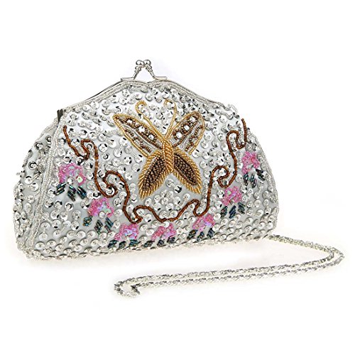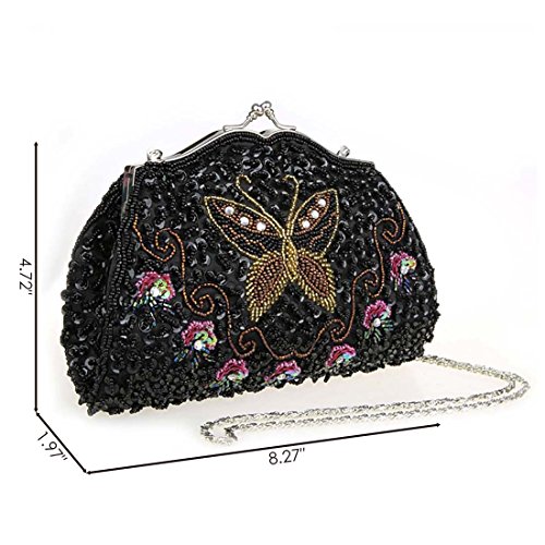 -. Brand : b.m.c -. Department : womens -. Feature : TURN HEADS with this STYLISH butterfly design, tiny bead and sequin encrusted evening bag / COMPACT, YET SPACIOUS this bag has the following dimensions 8.3 in (L) X 1.9 in (W) X 4.3 in (H). / FLAWLESS INTERIOR - the main compartment features soft lining and includes 1 open side pocket / VERSATILE DESIGN - add the shoulder chain for a 23 inch drop or use the smaller 6 inch handle chain / OTHER DETAILS - Material: Bead Encrusted Satin. Closure: Kissing Lock. Max Opening: 5 inches -. Label : Bundle Monster -. Manufacturer : Bundle Monster -. NumberOfItems : 1 -. ProductGroup : Shoes -. ProductTypeName : HANDBAG -. Publisher : Bundle Monster -. Studio : Bundle Monster -. Title : BMC Womens Tiny Bead Encrusted Butterfly Design Clutch Evening Bag