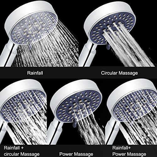 - ▲5 MODE ADJUSTABLE SETTINGS:Handheld shower head have 5 different spray settings,Rainfall, Circular Massage, Power Massage, Rainfall and Circular Massage,enjoy a happy shower time.