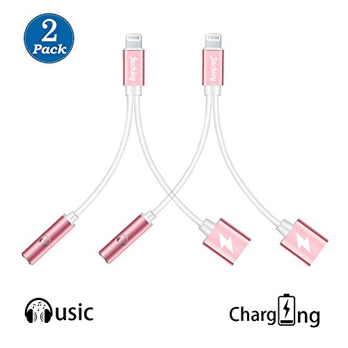 -. Title : 2 in 1 iphone 7 Adapter, 2 Pack Lightning to 3.5mm Headphone Jack Audio Adapter Premium Lightning Adapter and Charger for iPhone 7 / 7 Plus (Rose Gold)