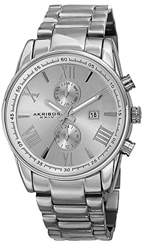 Akribos XXIV Men's AK812SS Multifunction Quartz Movement Watch with Silver Dial and Stainless S...