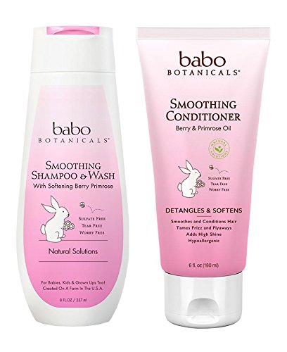 This bundle includes one 8 fl. oz. bottle of Babo Smoothing Berry Primrose Baby Shampoo and Baby Wash and one 8 fl. oz. bottle of Babo Smoothing Berry Primrose Conditioner