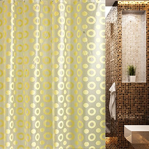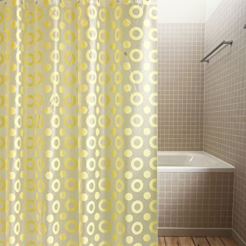 BBolive Decorative Mildew Free PEVA 5 Gauge Shower Curtain Liner Set with 12 Plastic Hooks -Waterproof Liner with Rust Proof Metal Grommets (71H x 32W, Gold(Circle))