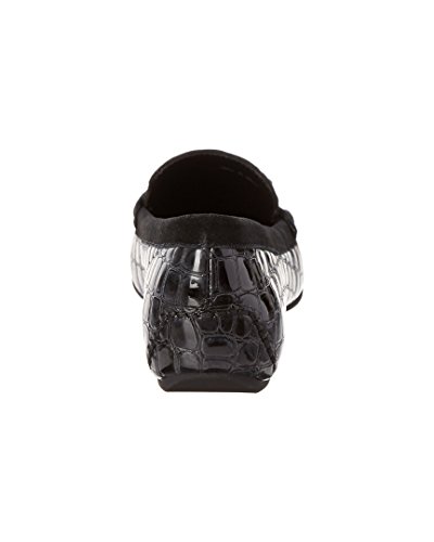 Product DescriptionColor/material: black crocodile embossed patent leather. Design details: silver-tone hardware. Lightly padded insole. Rubber sole with traction. Imported0