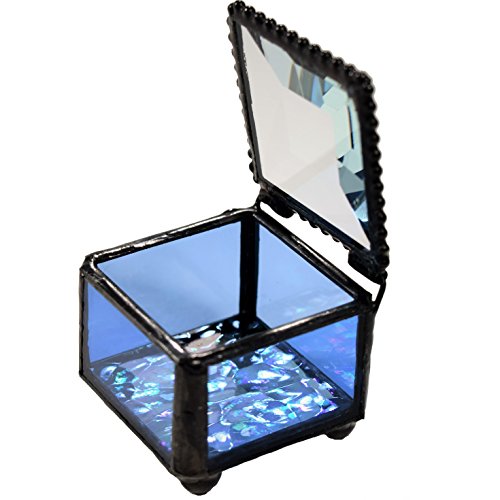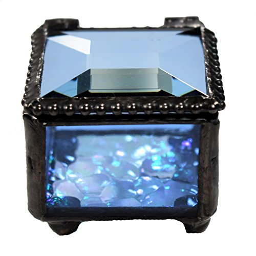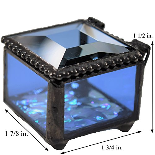 -. Binding : Kitchen -. Brand : J Devlin Glass Art -. Color : Blue -. EAN : 0875761000503 -. Feature : Tiffany styled jewelry box in blue with a hinged beveled top an iridescent glass bottom / Decorative beaded edge and round ball feet / Use as a ring box or for small trinkets and treasures. / Handcrafted stained glass keepsake box made with lead free solder to protect you and the environment / Designed and Manufactured by J Devlin Glass Art 1 3/4" x 1 7/8" x 1 1/2" -. IsAutographed : 0 -. Label : J Devlin Glass Art -. Manufacturer : J Devlin Glass Art -. Model : Box 521 -. MPN : Box 521 -. PackageQuantity : 1 -. PartNumber : Box 521 -. ProductGroup : Home -. ProductTypeName : HOME -. Publisher : J Devlin Glass Art -. Size : 1 3/4" x 1 7/8" x 1 1/2" -. Studio : J Devlin Glass Art -. Title : J Devlin Box 521 Mini Blue Stained Glass Jewelry Keepsake Ring Box -. UPC : 875761000503