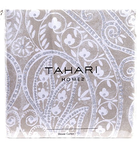 Tahari Cotton Shower Curtain Bohemian Paisley Medallions Silver Gray White Grey 72-by-72-inch (Taupe)