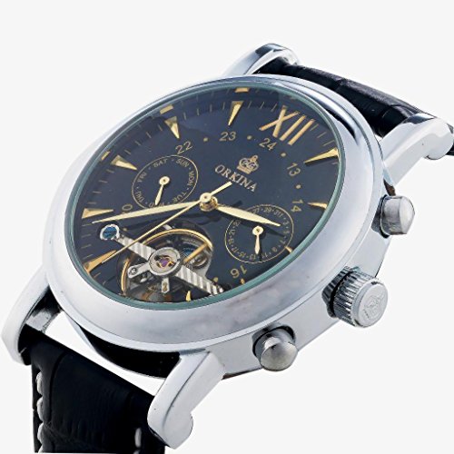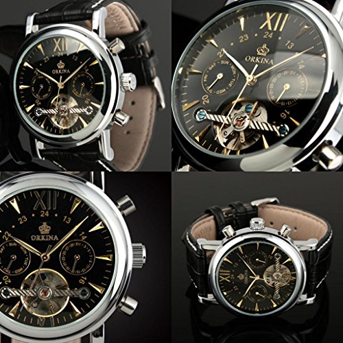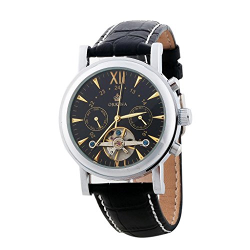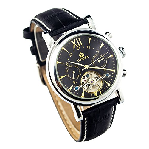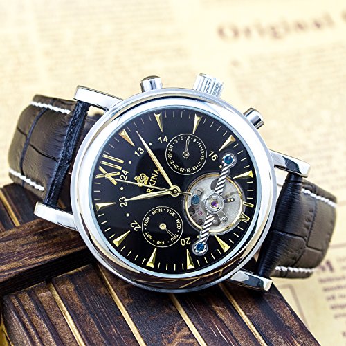 원본상품명: GuTe出品 トゥ?ルビヨン 可愛らしい スタイリッシュ 革バンド 優雅 カジュアル 日付、曜日表示 ブラック メンズ 自動?き腕時計