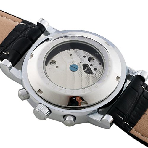 GuTe Mechanical GuTe출품 to 루비《욘》 작고 예쁘장스럽 스타일리시 가죽 밴드 우아 캐주얼 날짜,요일 표시 블랙 맨즈 자동 감기 손목시계