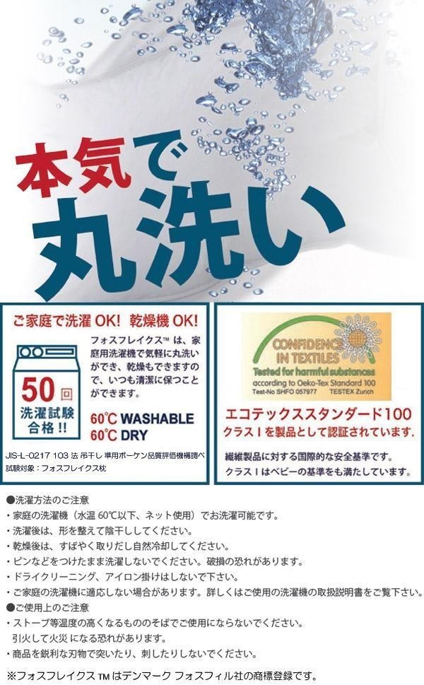 | 素材・材質 | 側地:綿100%、中材:ポリエステル100%(フォスフレイクスTM70%、ポリエステルつぶ綿30%) (詰め物重量:フォスフレイクスTM:1610g、ポリエステルつぶ綿:690g) |
