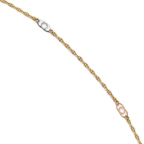 Roy Rose Jewelry Leslie's 14K Yellow Gold Diamond-cut Tri Color Gold w/1'' extension Anklet ~ Length 9.5'' inches