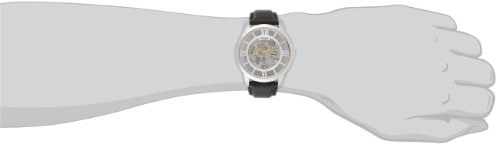 - Feature : Skeleton watch in silver-tone stainless steel featuring transparent dial with silver-tone Roman numeral outer dial / 44 mm stainless steel case with mineral dial window / Automatic self-wind movement with analog display / Leather calfskin band with tonal stitching and buckle closure / Water resistant to 50 m (165 ft)