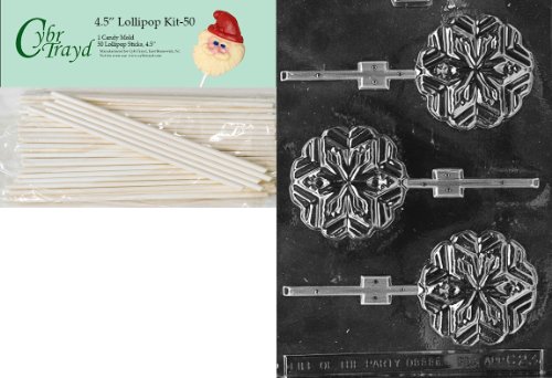 Cybrtrayd 00045St50-C023 Snowflake Lolly Christmas Chocolate/Candy Mold with 50 4.5-Inch Lollipop Sticks