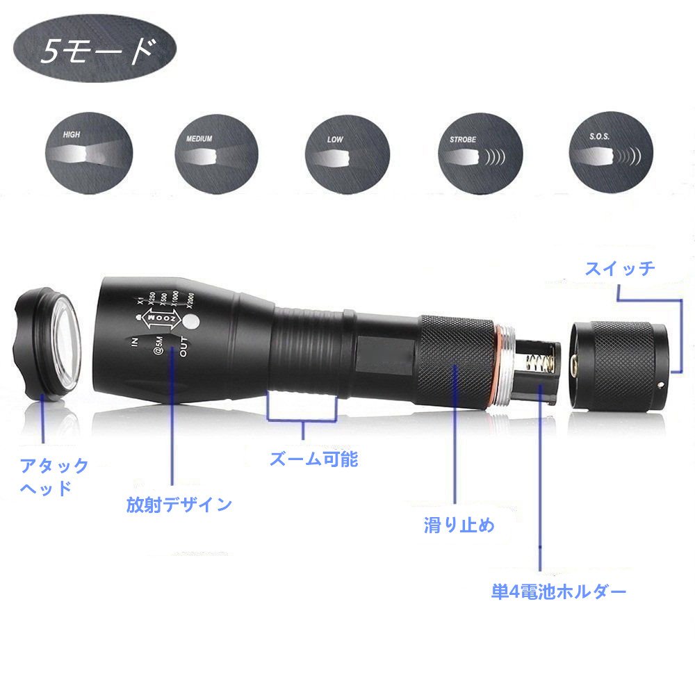 Mode: High, Middle, Low, Flash, with SOS ZOOM function