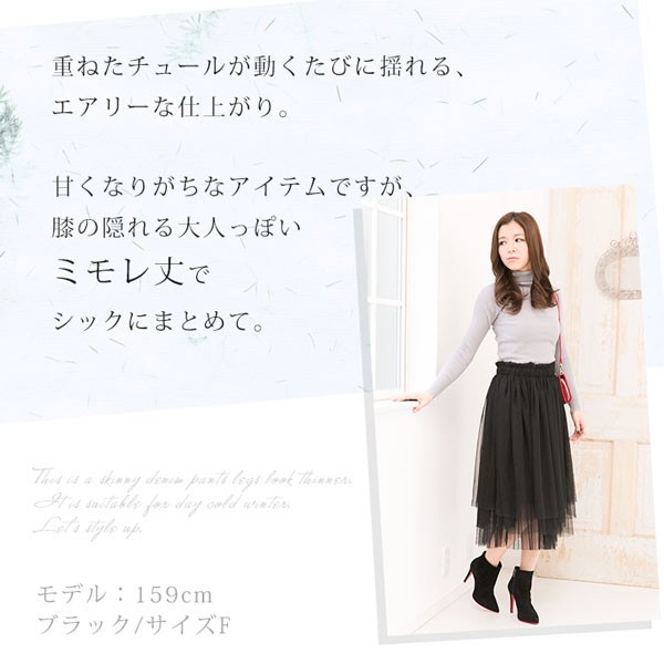 | 商品名 | ミモレ丈 フェミニン フレアチュールスカート |