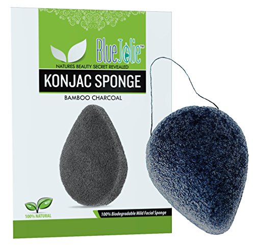 The Official Blue Jolie® Natural Konjac Sponge – An Organic Beauty Sponge with Activated Bamboo Charcoal, Natures Best Exfoliator for Your Face – Facial...