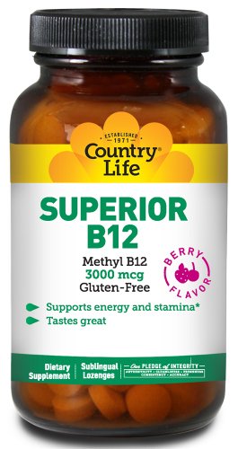 -. Binding : Health and Beauty -. Brand : Country Life -. EAN : 0015794016465 -. Feature : Methyl B-12 / Certified Gluten-Free / Vegetarian and Kosher / GMP Certified / Dietary Supplement -. Label : Country Life -. Manufacturer : Country Life -. MPN : 015794016465 -. PackageQuantity : 50 -. PartNumber : 015794016465 -. ProductGroup : Health and Beauty -. ProductTypeName : HEALTH_PERSONAL_CARE -. Publisher : Country Life -. Size : 50 Lozs -. Studio : Country Life -. Title : Country Life Superior B-12 Sublingual Berry Flavored, 50 Lozs -. UPC : 015794016465