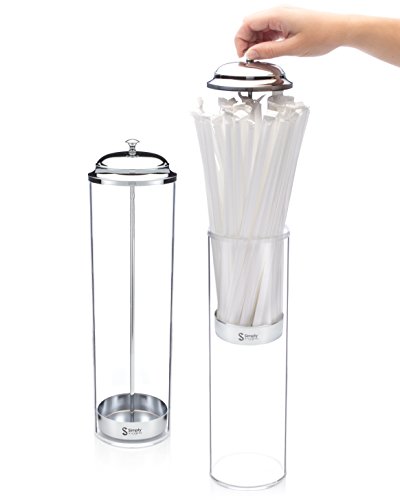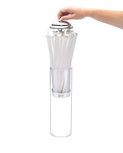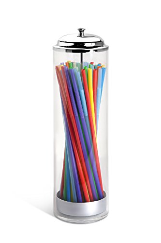 Flawless Clear Acrylic Body w/Precise Fitting Pull-Up Chrome Plated Lid and Tray -- Pull Up the Top & Straws Fan Out for Your Choosing