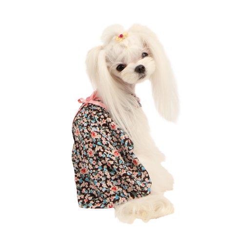 Studio : Puppia Int'l Inc. Publisher : Puppia Int'l Inc. Binding : Misc. Product Description The Ensemble dress is a cute and lovely sleeveless dress adorned with frills and a ribbon on the back. It features a flower pattern and polka dot scheme. It has an available sanitary panty that is sold separately (Style# PAND-PT120). It is available in Brown and Navy in sizes ranging from small to large. Please note that because these products were created with small/medium dog breeds in mind, larger sizes (i.e. Large, Extra-Large, etc.) do not necessarily mean larger breeds. Please refer to image of the size chart. It is very important to measure your dog with a tape measure according to the size chart. As a general rule of thumb, if your dog falls in between sizes, it is usually better to go up a size. Weight figures are for estimates only. Always use actual measurements. Please note that when measuring your dog for clothing, it's very important to have an accurate measurement of your dog's neck and chest girth. IMPORTANT: Please note that when measuring your dog, the measurement for the neck must be taken at the BASE OF THE NECK and chest girth must be taken behind the front legs. Also it is important to take into account the size of the dog's head as well as neck girth and chest girth. Since some dogs have a much larger head than their neck, please be sure that the neck opening is large enough to slide over your dog's head. 0
