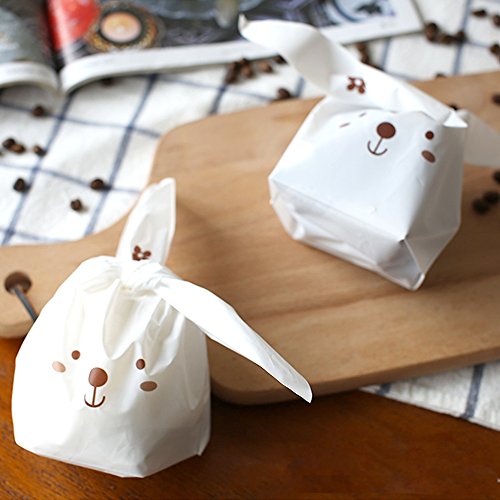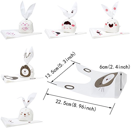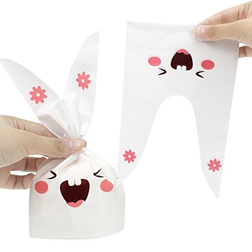 Tomnk 100PCS Halloween Bunny Candy Bags Easter bags Gift Wrap Bags for Party Favors Supplies Rabbit Ear Bags with 100PCS Twist Ties