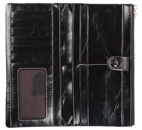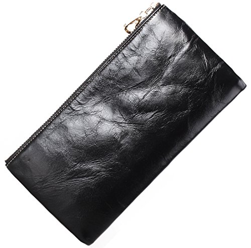 - Title : Heshe Luxury Women's Waxy Cow Leather Long Zipper Wallet Clutch Purse Card Phone Holder Coin Case Money Clip (Black)