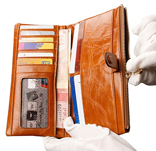 - Feature : [!]We use the oil wax leather for this wallet,oil wax cowhide is made of top layer leather,please check the Product Description,we will offer you a detailed briefing about oil wax cowhide / Great size and good amount of compartments.12 credit card slots and 1 photo window, 3 full length pockets, zipper coin change pouch can also put bills in it. Easily hold your Samsung Galaxy Note, Iphone6s, Iphone6 Plus / Comes with a leather detachable wrist strap, Zipper designed for the safety of your properties.Available in 5 attractive colors to fit your personal style. Detail stitching matches the wallet color. / Product dimensions: (L)7.2" x (W)3.7" x (H)0.8" in ,and the weight is 0.2 pounds / *Attention:HESHE is an US registered trademark,unauthorized sale without permission,we will investigated for legal responsibility.