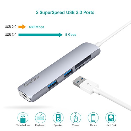 Multi-Use and Unexpected function-The Type-C Hub features two USB 3.0 ports, a SD and Micro SD card slot, and a charging port