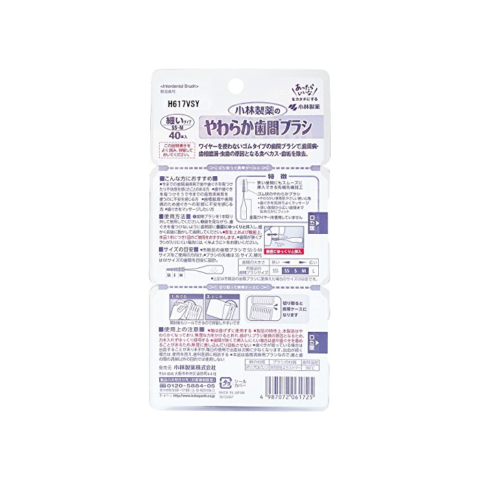 Dental Dr. 코바야시 제약의 부드러운 치간브러시 가는 타입 SS-M사이즈 40개 고무 타입