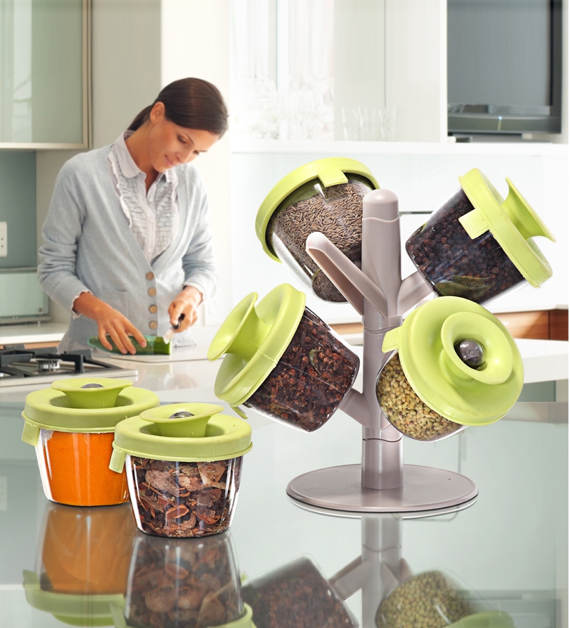 The Fine Life Pop-up 6 Container Spice Rack with Storage Tree is a stylish rack with an elegant design that provides a sleek and modern look. This Fine Life Pop-up 6 Container Spice Rack with Storage Tree has 6 convenient see through containers with easy pop up lids.