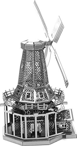 Each model starts out as 4 inch square metal sheets and you simply pop out the pieces and follow the included directions to assemble your model. No solder or glue required. The term windmill derives from their use to mill grain. The first windmills appeared in Europe during the 12th century in northwestern France and southern England. At their peak of popularity some windmills were able to produce more than 1500 megawatts of power, a level not reached again until 1988. The model is 3.9x1.75x2.05 when built.