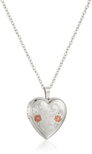 Sterling silver hand engraved heart-shaped locket with tricolor and cross design