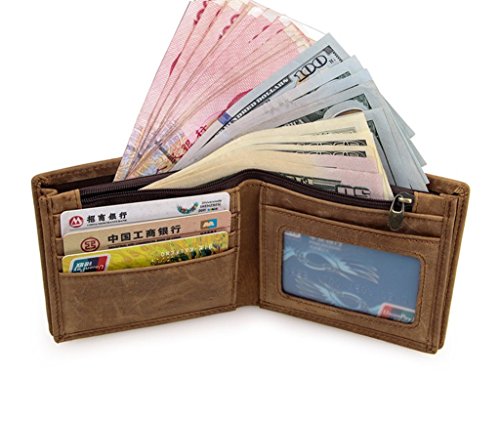 -. Feature : Matieral: cowhide leather / Dimension: L*W*H=12*9.5*2.5CM (Folded); [1inch=2.54cm] / Inner Structure: 2 bill pockets,1 zipper pocket,3 card slots,1 picture slot. / Package Include: 1pc wallet / Perfect for daily use like dating,working,shopping,travelling and more. A great gift for men/boys.