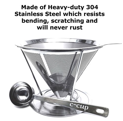C-Cup Stainless Steel Pour Over Coffee Dripper with Removable Cup Stand And Scoop - Up to 4 Cups