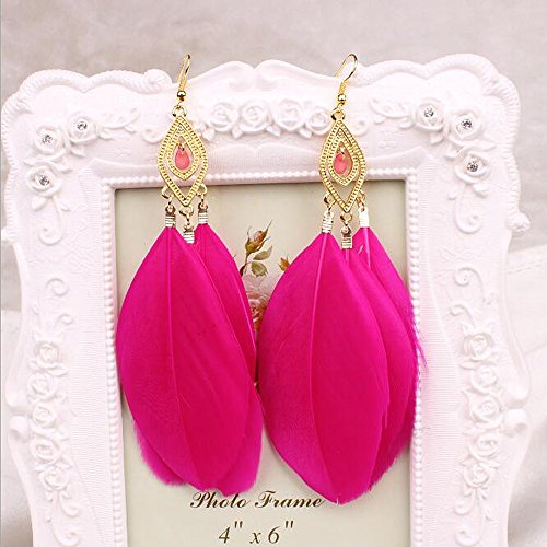 A&C Fashion Bohemia Rose Feather Dangle Earrings Jewelry for Women, Hot Sell Indian Feather Eardrop for Girls.