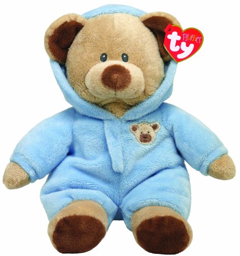 -. Binding : Toy -. Brand : Ty Pluffies -. Color : blue -. EAN : 0885728141217 -. Feature : Official product from Ty / Look for the familiar heart-shaped tag that means you've purchased an authentic Ty product / Handmade with the finest quality standards in the industry / Collect them all / High quality for a low P.R.Ice -. HazardousMaterialType : Unknown -. IsAdultProduct : 0 -. ItemPartNumber : 32130 -. Label : Ty -. LegalDisclaimer : Must be at least 18 & over to purchase -. Manufacturer : Ty -. Model : 32130 -. MPN : 32130 -. NumberOfItems : 1 -. PackageQuantity : 1 -. PartNumber : 32130 -. ProductGroup : Toy -. ProductTypeName : TOYS_AND_GAMES -. Publisher : Ty -. ReleaseDate : 2010-11-12 -. Size : Small -. SKU : TY32130 -. Studio : Ty -. Title : Ty Pluffies Pj Bear 9" Blue -. UPC : 885728141217