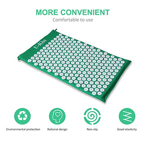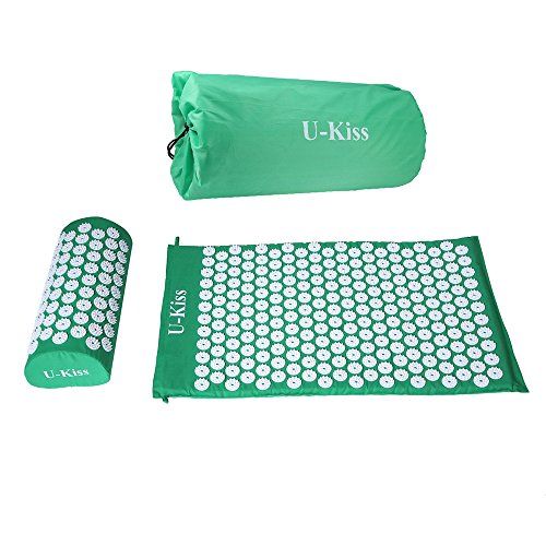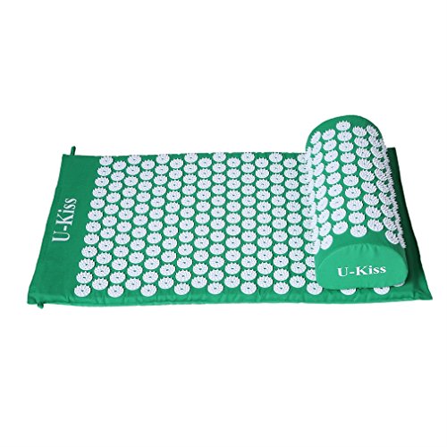 U-kiss Akupressurmatte Akupressur Kissen Massagematte Akupressur-Set mit Infoposter - Akupressurmatte & Akupressurkissen |Schadstofffrei und TUV SUD getestet | Schwarz und Grun