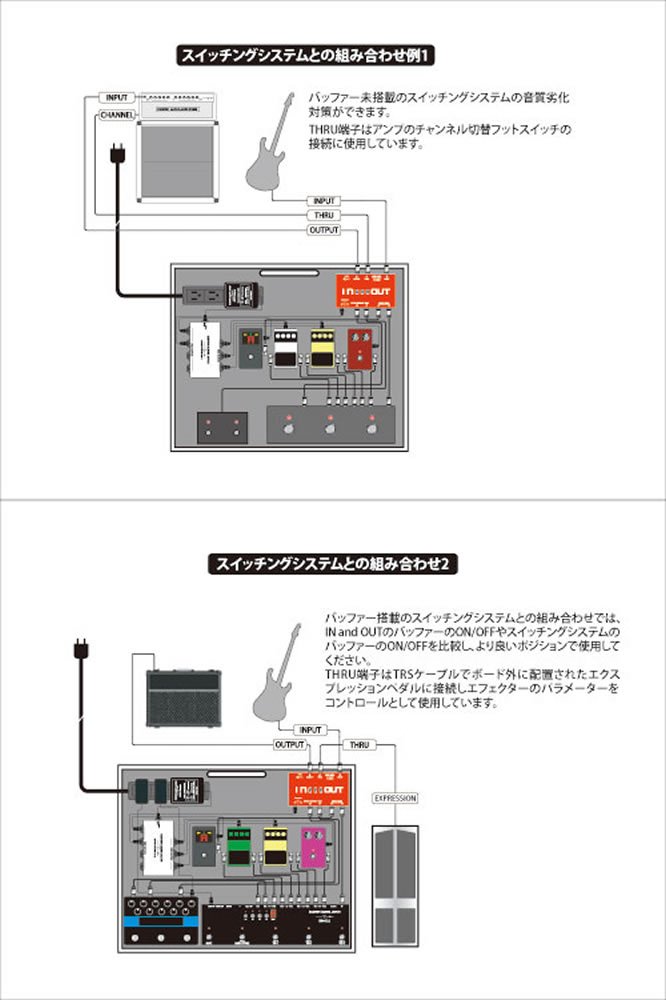 By using IN and OUT, the guitar and the terminals to be connected to the amplifier are gathered together in one place, and the effect board which can do the smooth setting without trouble by inserting and pulling plug is completed.