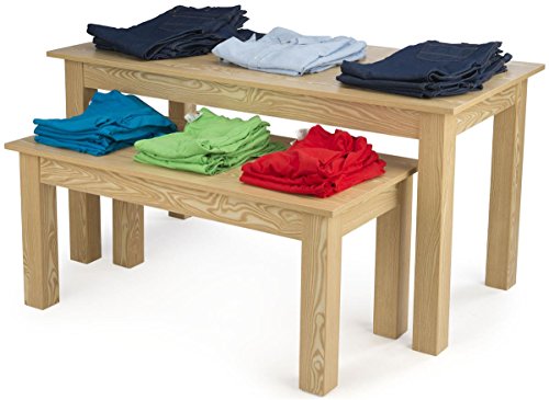 -. Feature : Retail nesting tables in wood are sold 2 per unit, one fitting inside the other / Furniture provides extra show space / Display new & featured products on 1 large, 1 small tabletop / Modern rectangular shape adds style / Imitation ash finish is easier to maintain than wood